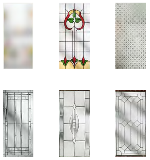 For doors, there are many coloured glass and decorative options to choose from, whether you want a contemporary or traditional look, or simply want to let light in but maintain privacy with frosted glass.